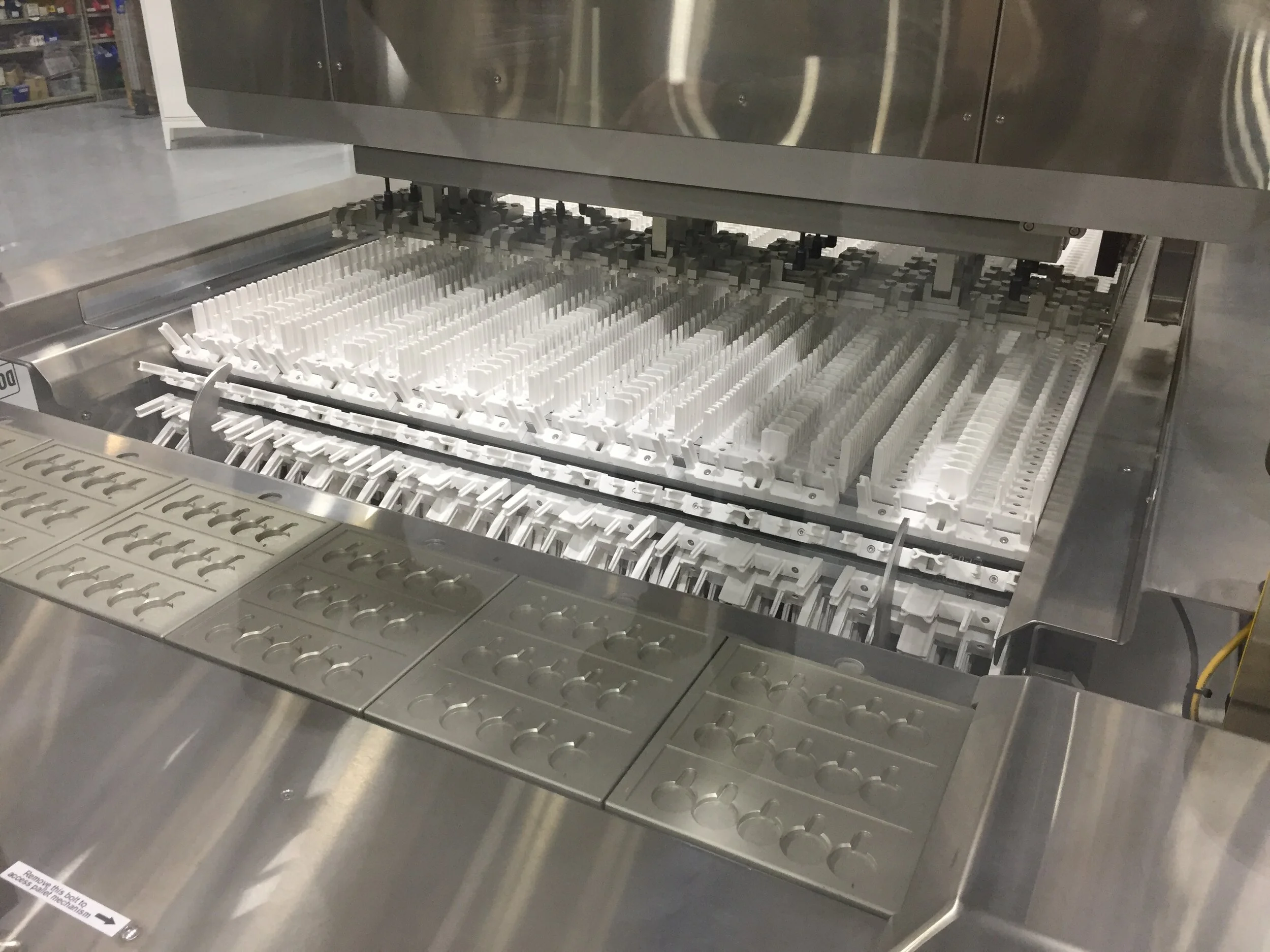Complex geometry plastic fingers are painstakingly analysed and precision moulded to handle the pharmaceutical ampoules filling